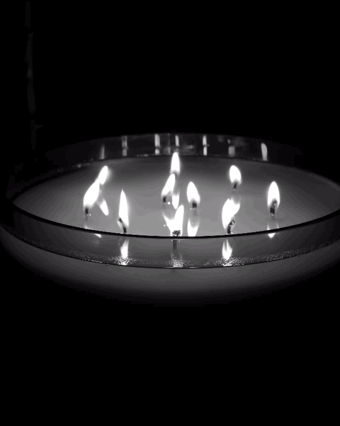 Attention demanding with a thick, high-walled smoked glass frame that displays a tremendous glow when lit & accentuates the silhouette of melted golden wax.